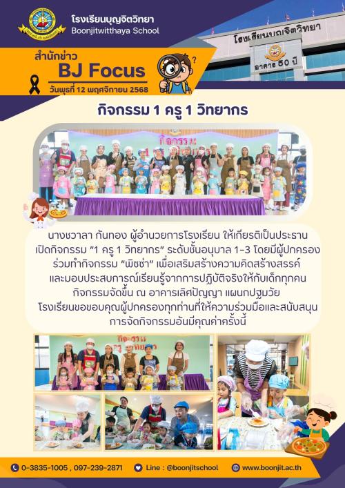วันศุกร์ที่ 31 ตุลาคม พุทธศักราช 2568 นางชวาลา กันทอง ผู้อำนวยการโรงเรียนบุญจิตวิทยา พร้อมด้วยคณะผู้บริหาร คณะครู และนักเรียน ร่วมกิจกรรมถวายความเคารพ