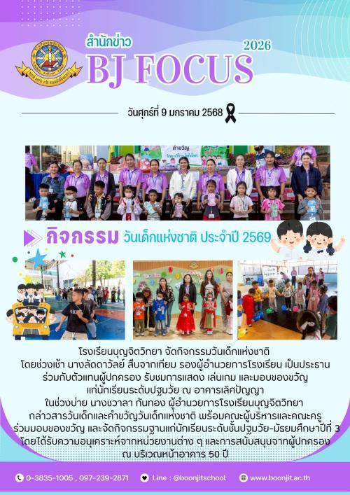 วันศุกร์ที่ 9 มกราคม 2568 โรงเรียนบุญจิตวิทยา จัดกิจกรรมวันเด็กแห่งชาติ โดยช่วงเช้า นางลัดดาวัลย์ สืบจากเทียม รองผู้อำนวยการ