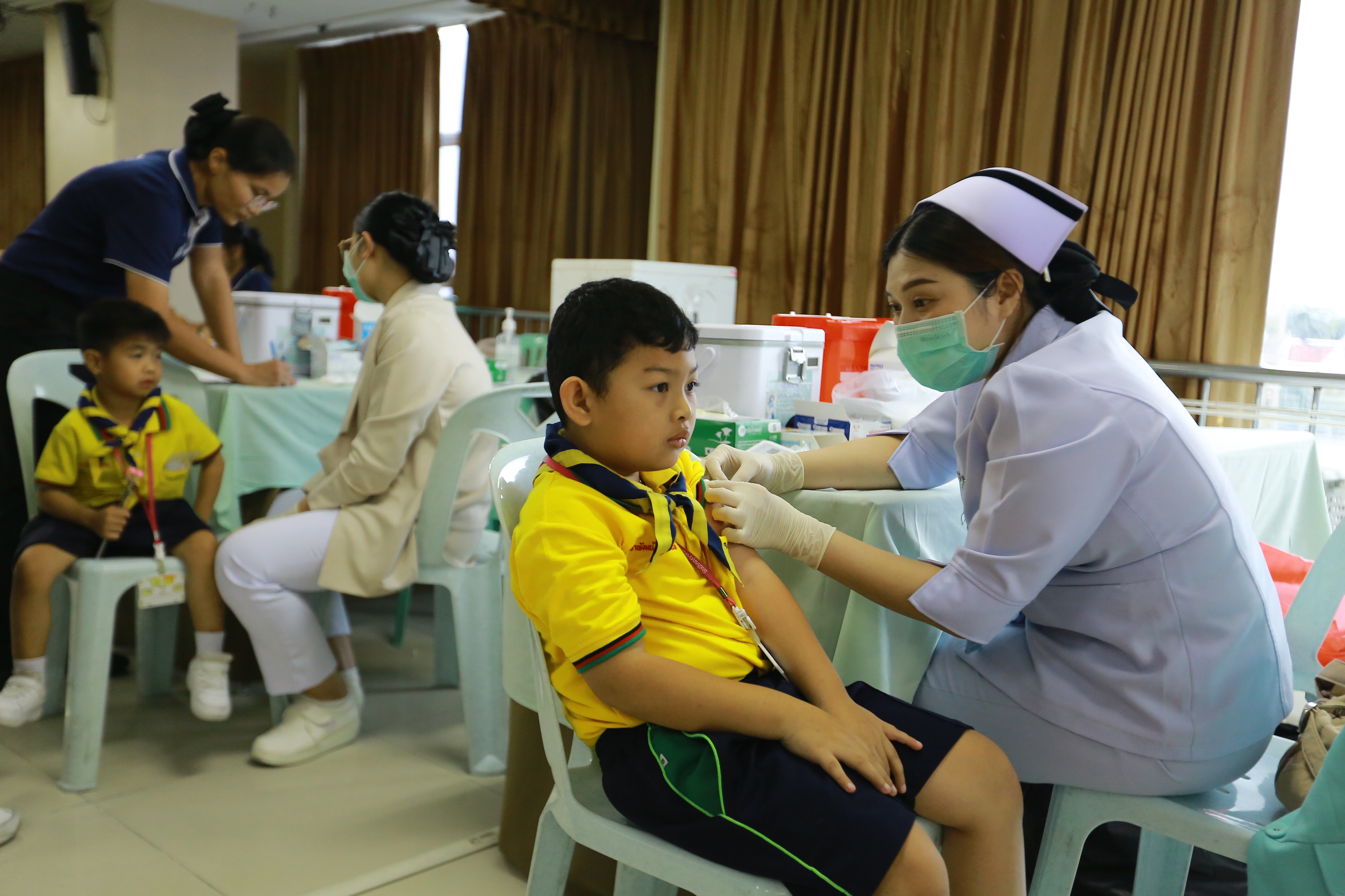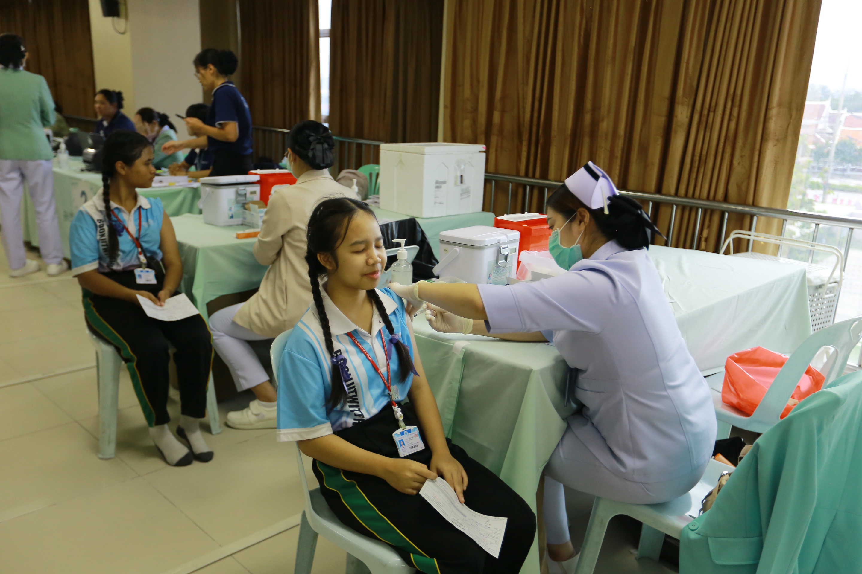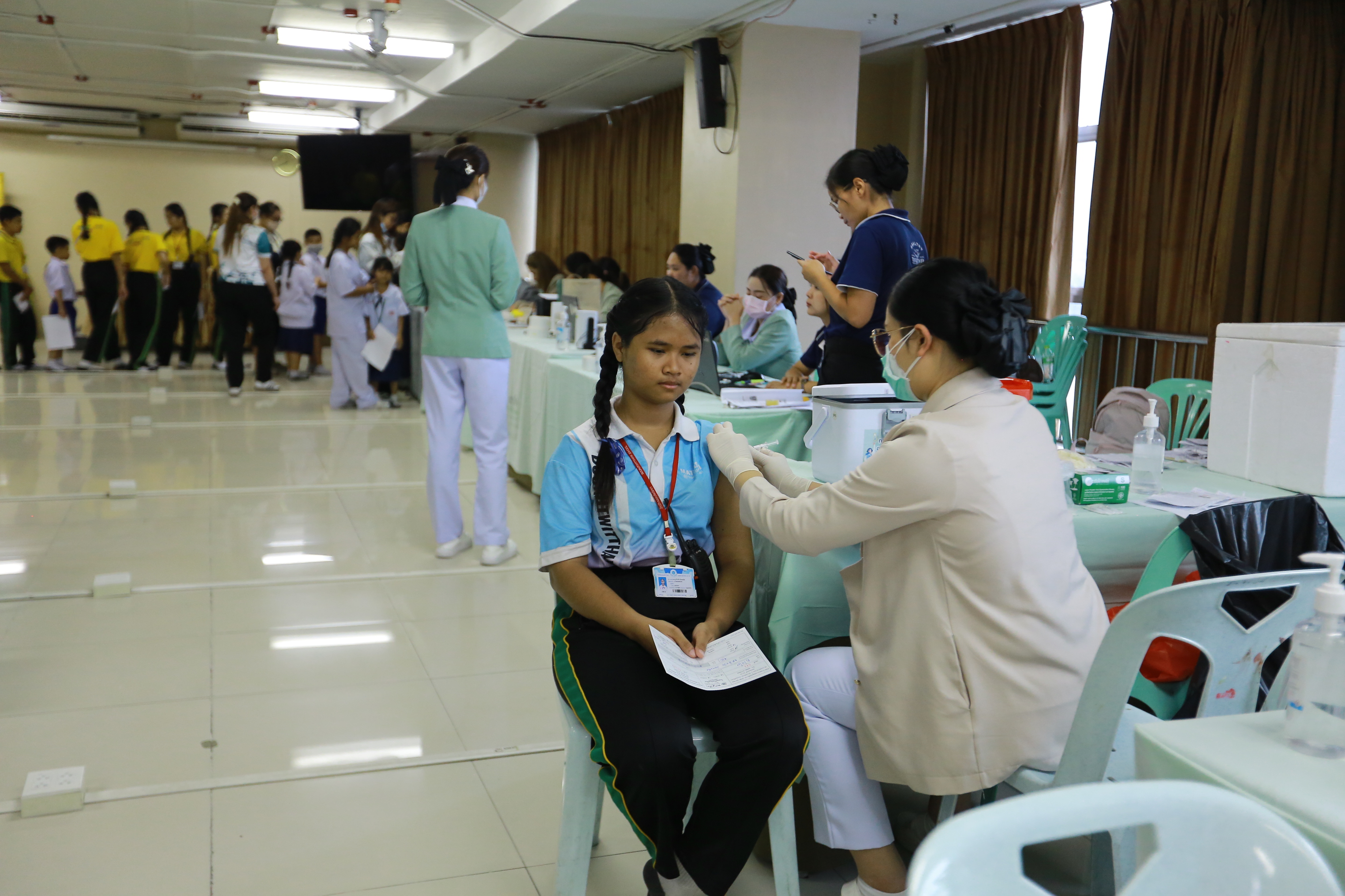 วันศุกร์ที่ 26 กันยายน 2568 นางทัศนัยา สัตยะวงค์ ผู้ช่วยผู้อำนวยการ ประสานร่วมกับ เจ้าหน้าที่พยาบาลโรงพยาบาลพญาไท ศรีราชา เปิดรับการฉีดวัคซีนป้องกันไข้หวัดใหญ่ ให้กับบุคลากรครู นักเรียนระดับชั้นอนุบาล 1- ระดับชั้นมัธยมศึกษาปีที่ 3 ผู้ปกครองและบุคคลภายนอกที่ลงทะเบียนเข้ารับการฉีดวัคซีนป้องกันไข้หวัดใหญ่ ณ ห้องประชุมชั้น 4 อาคาร 50 ปี