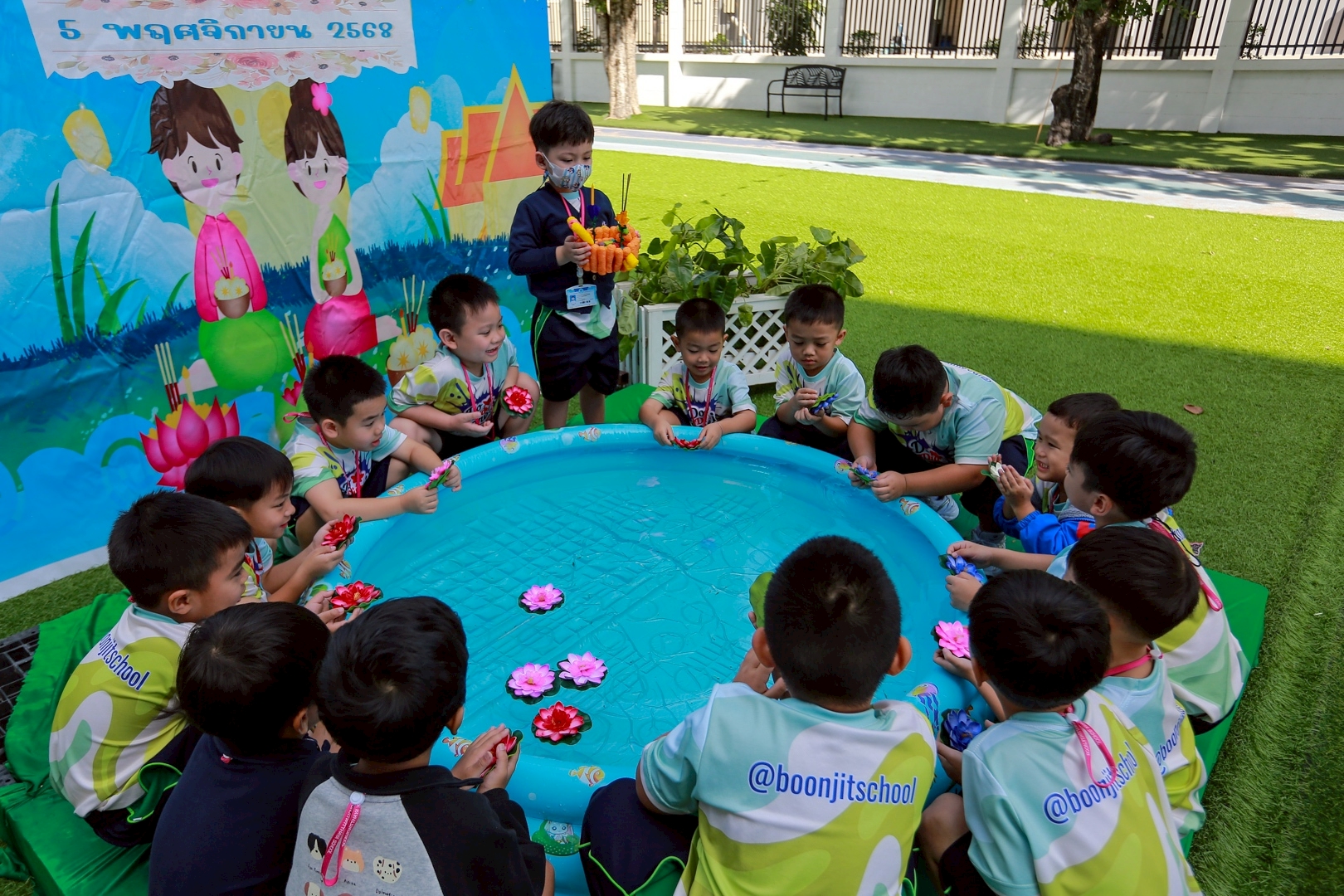 วันพุธที่ 5 พฤศจิกายน 2568 โรงเรียนบุญจิตวิทยา จัดกิจกรรมลอยกระทงสาธิต เพื่อสืบสานประเพณีไทยให้นักเรียนได้เรียนรู้ผ่านการลงมือทำสนุกกับการวาดภาพระบายสี ให้ความรู้เรื่องความปลอดภัยและการรักษาสิ่งแวดล้อม ณ อาคาร 50 ปี