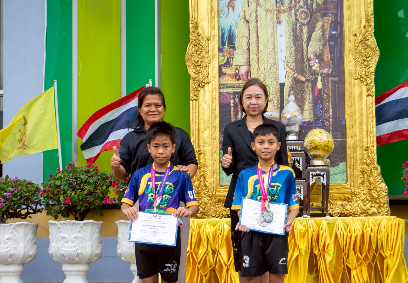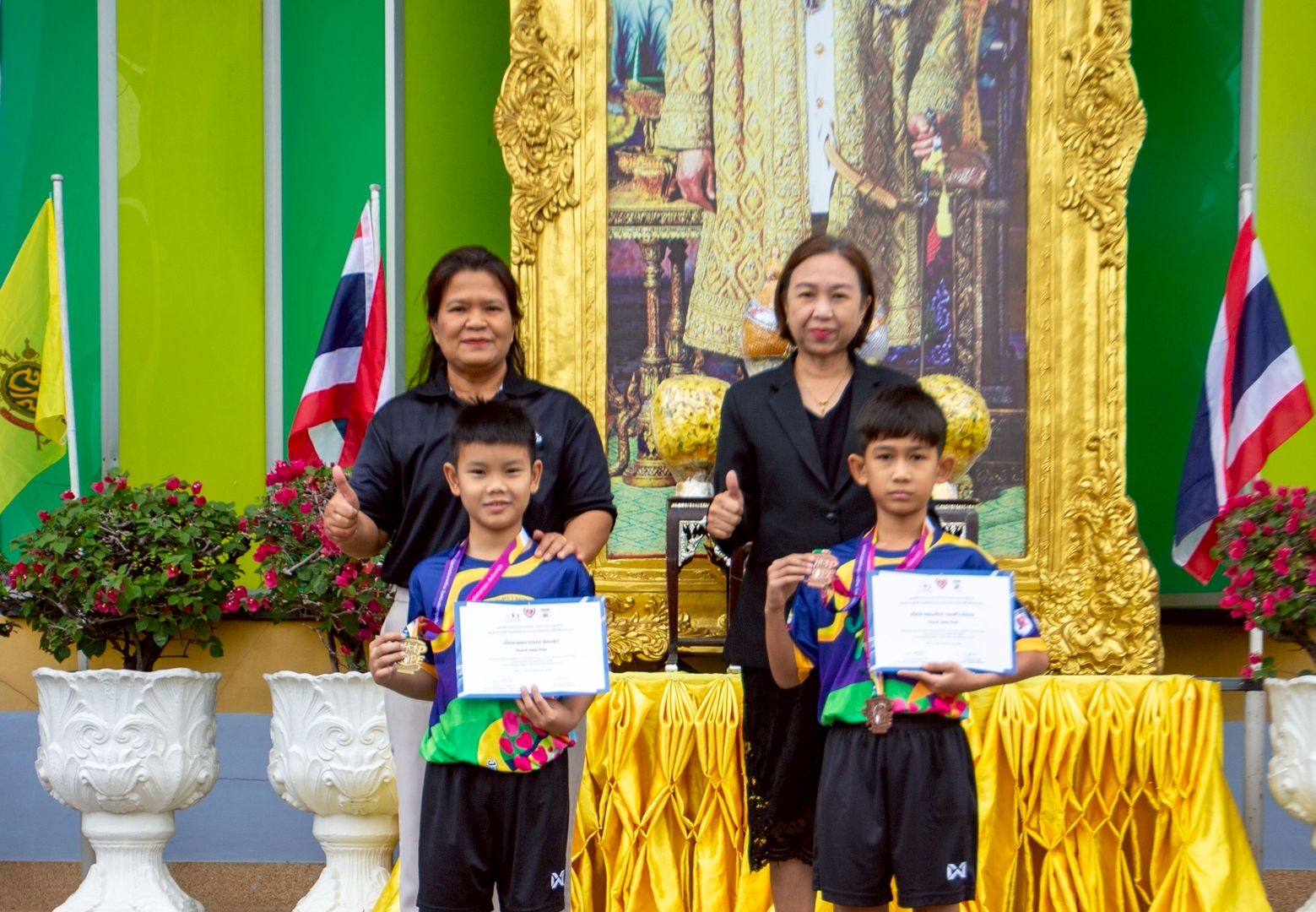 นางชวาลา กันทอง ผู้อำนวยการโรงเรียนบุญจิตวิทยา และนางพิกุลเงิน ฟักเกษ กรรมการบริหารโรงเรียน ร่วมแสดงความยินดีกับนักกีฬากระโดดเชือก พร้อมมอบเกียรติบัตรและ เหรียญรางวัล จากการแข่งขันกระโดดเชือกชิงถ้วยพระราชทาน ครั้งที่ 16 รายการ Queen's Cup Jump Rope Thailand Open 2025 (ประเภทมืออาชีพ)ชิงแชมป์ประเทศไทย และร่วมถ่ายภาพกับนักกีฬาที่สร้างชื่อเสียงให้กับโรงเรียน ณ บริเวณหน้าอาคาร 50 ปี