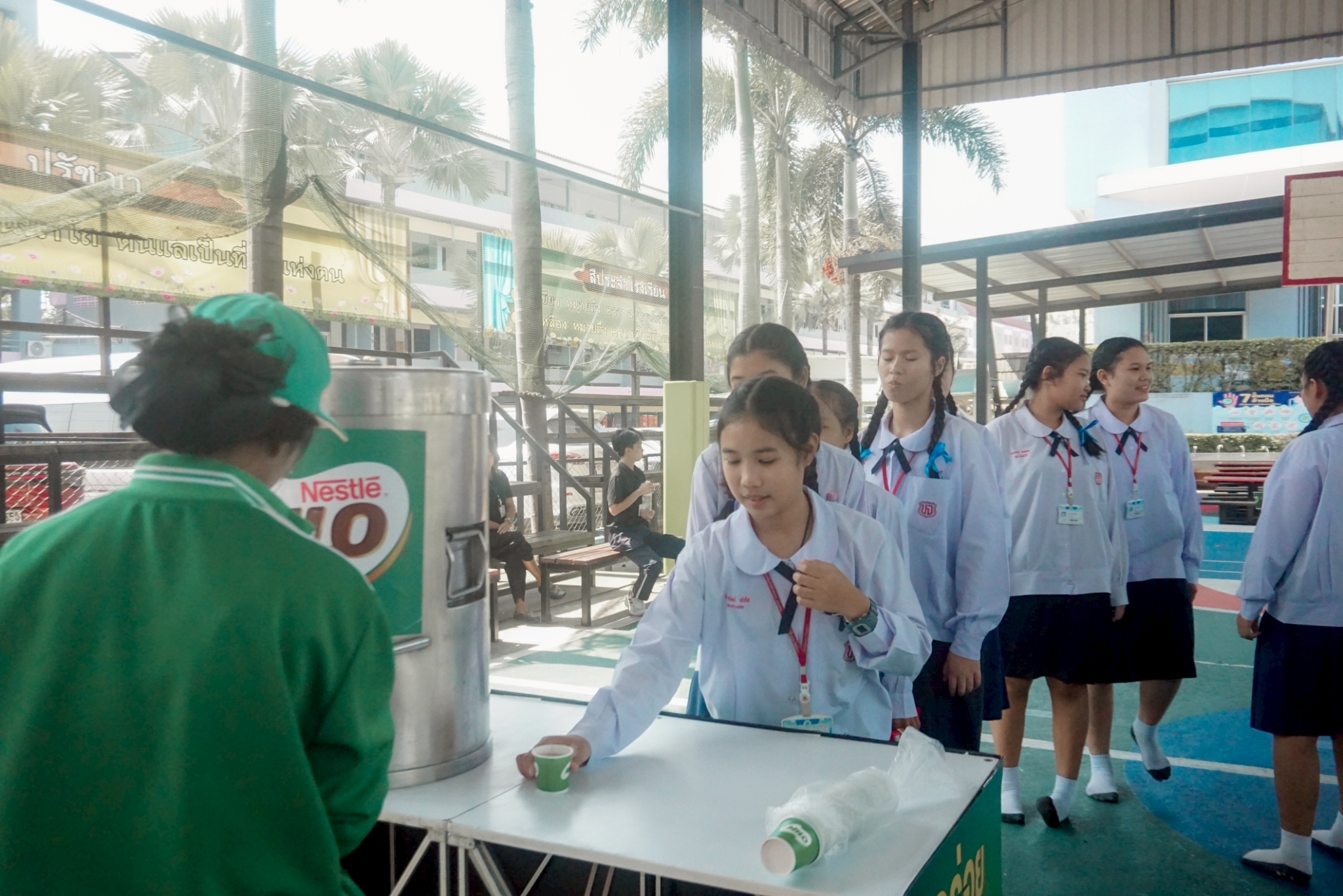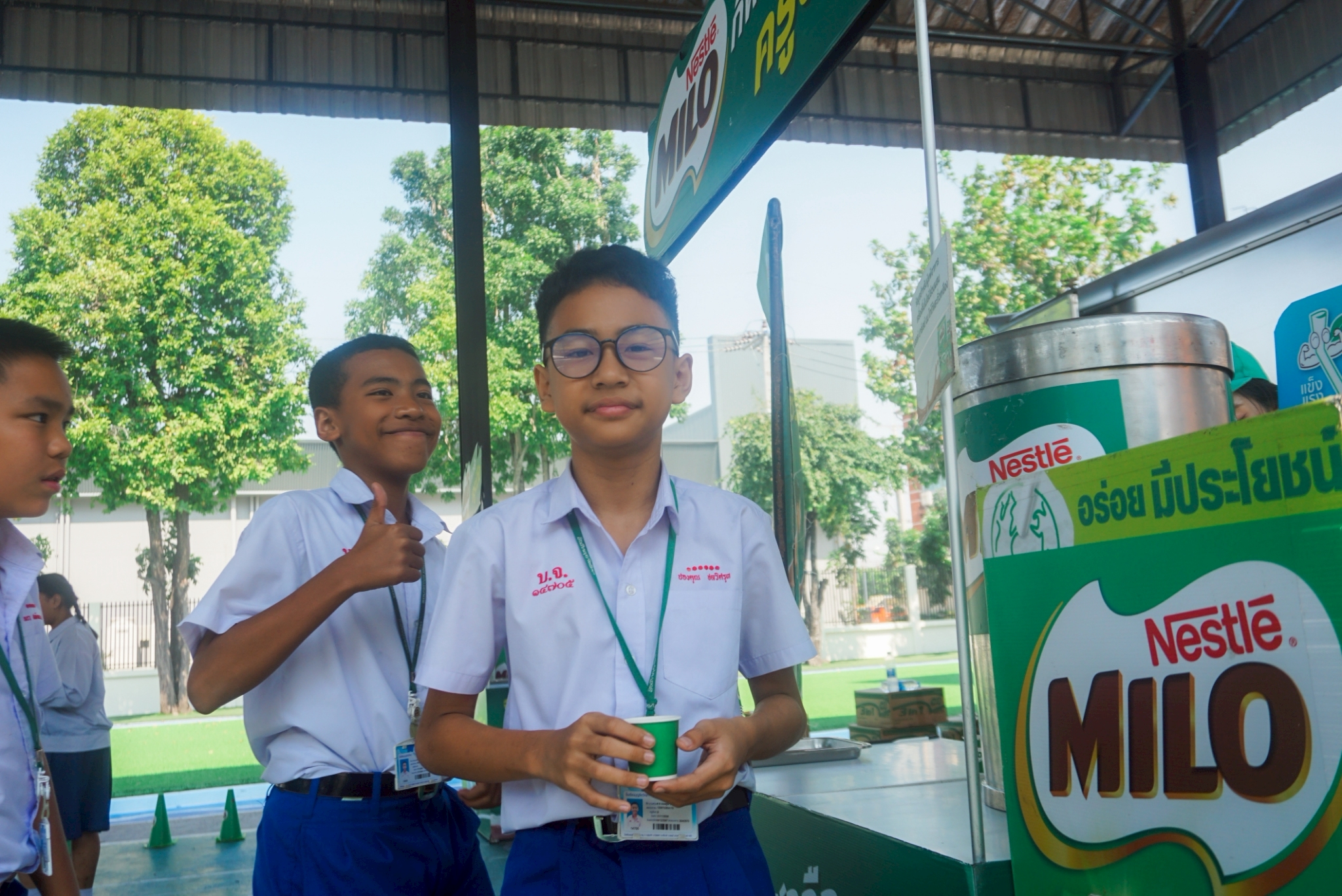 โดยมอบผลิตภัณฑ์เครื่องดื่มไมโลแบบชงให้แก่นักเรียนระดับประถมศึกษาปีที่ 1 ถึง มัธยมศึกษาปีที่ 3