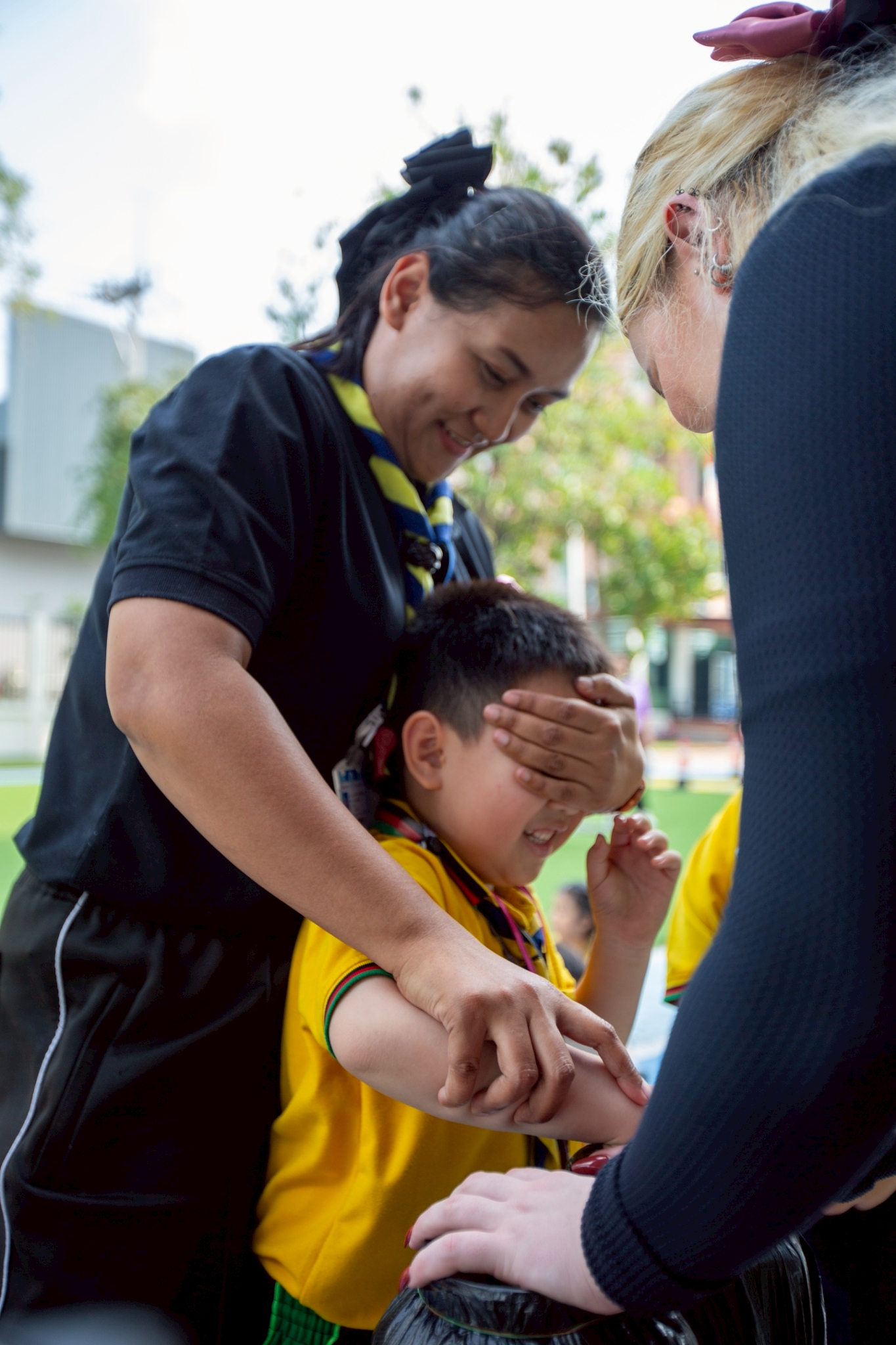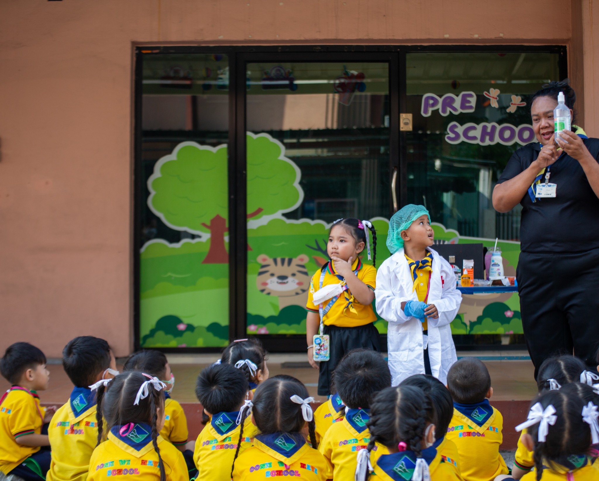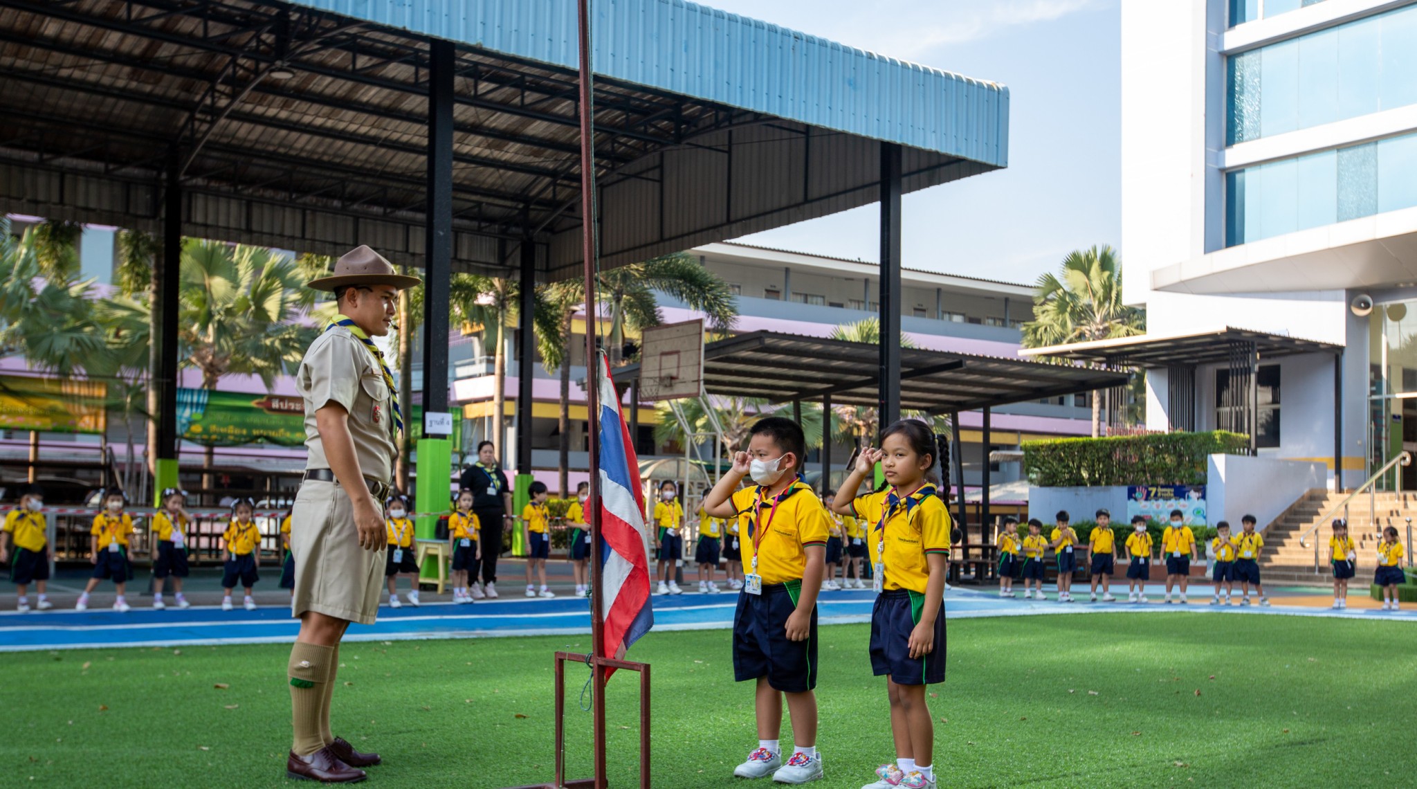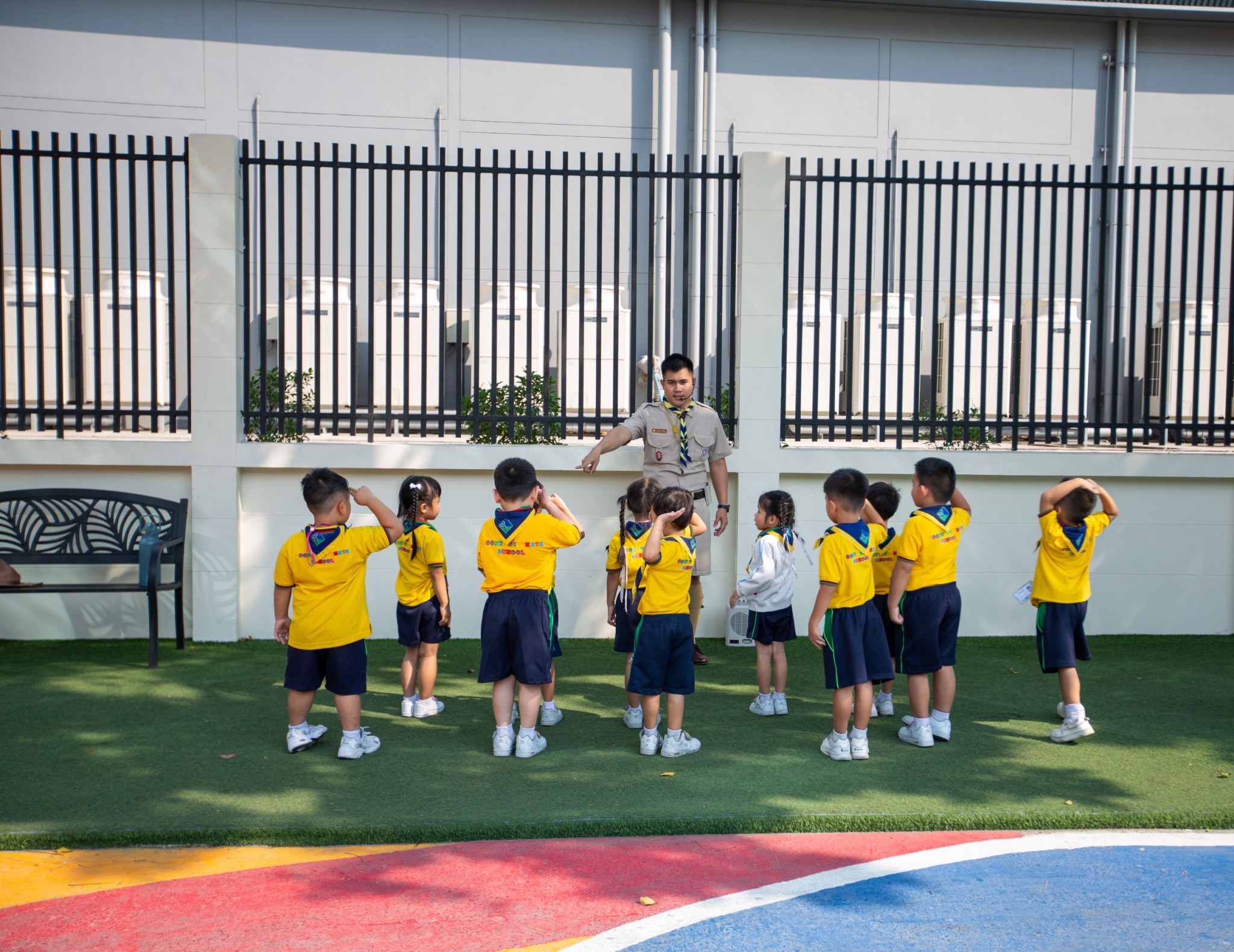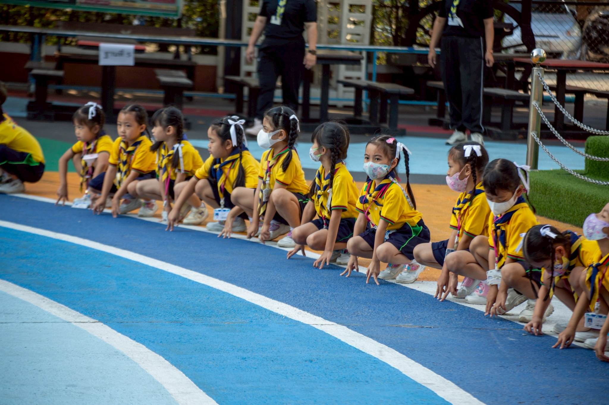 นักเรียนระดับชั้นอนุบาล 1 – นักเรียนระดับชั้นอนุบาล 3 เปิดกองลูกเสือและการเข้าฐานกิจกรรมผจญภัย ณ สนามหน้าอาคาร 50 ปี