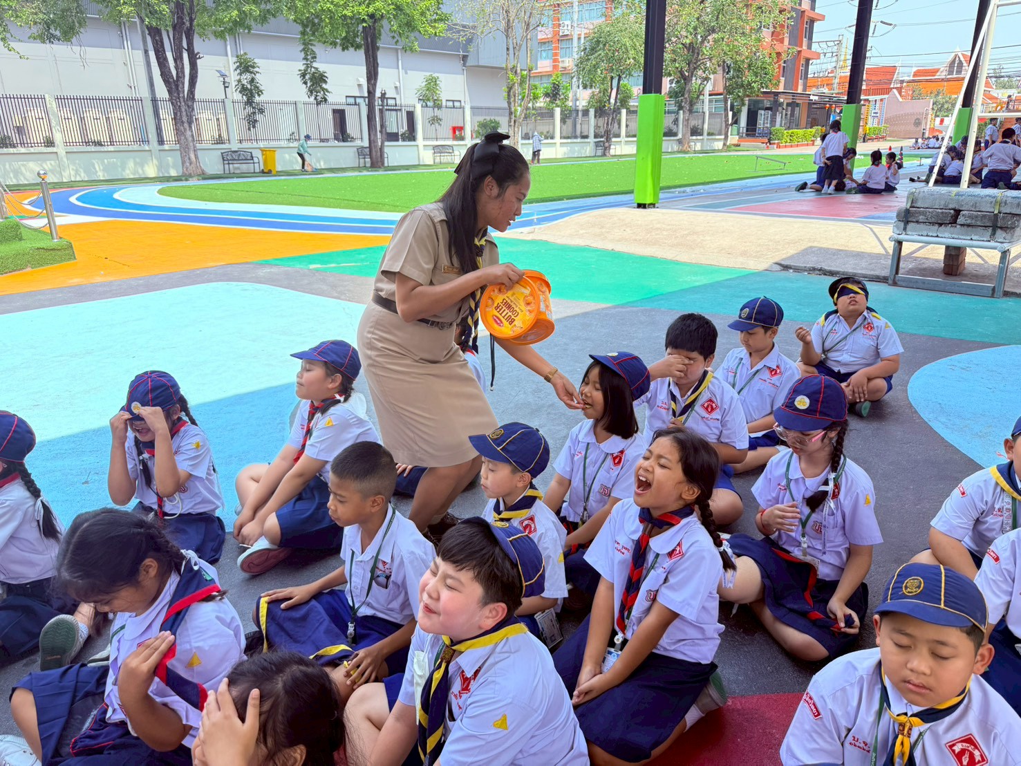 ผ่านฐานกิจกรรมต่าง ๆ ได้แก่ ฐานระเบียบแถว ฐานกฎและคำปฏิญาณลูกเสือ