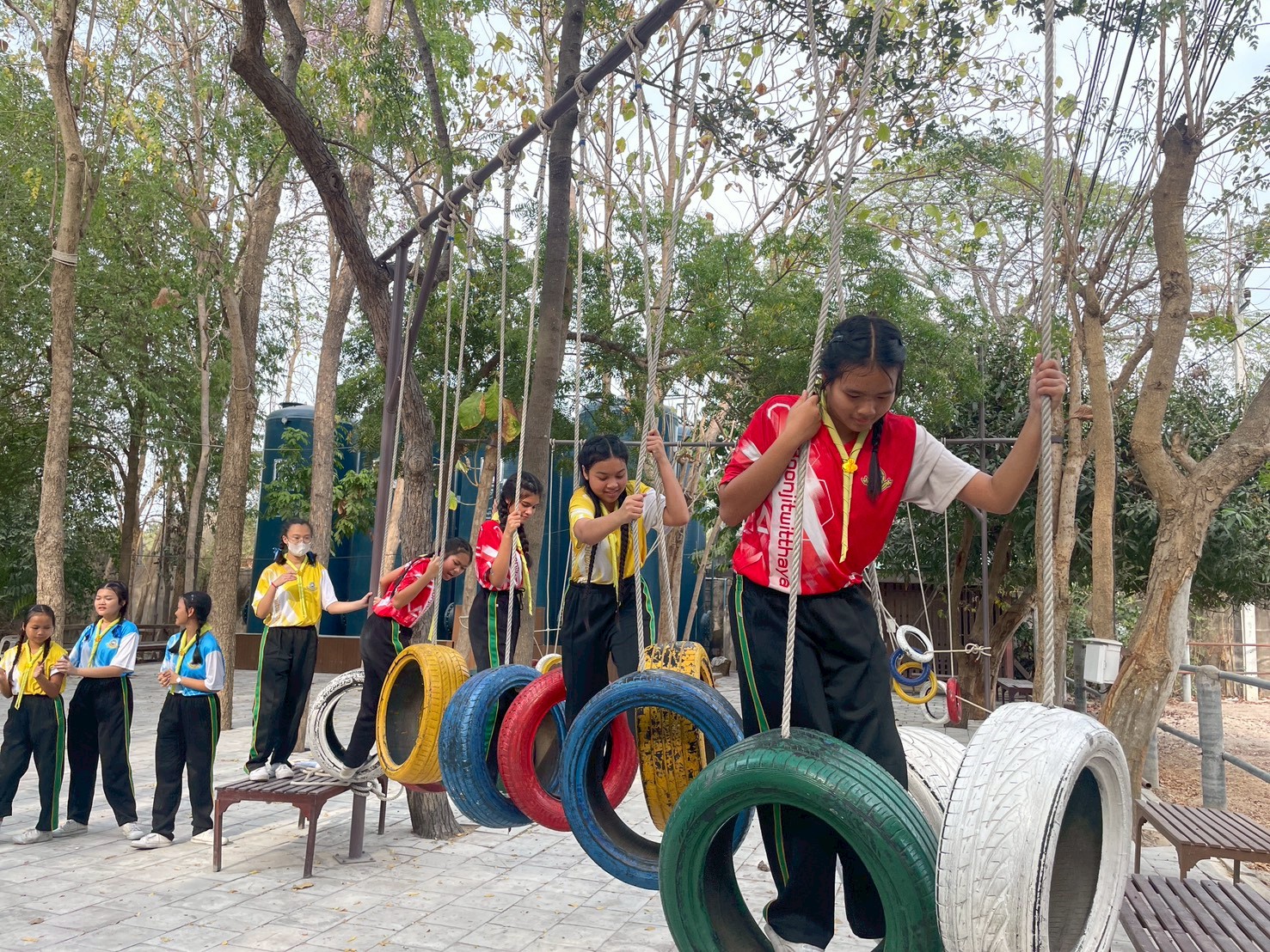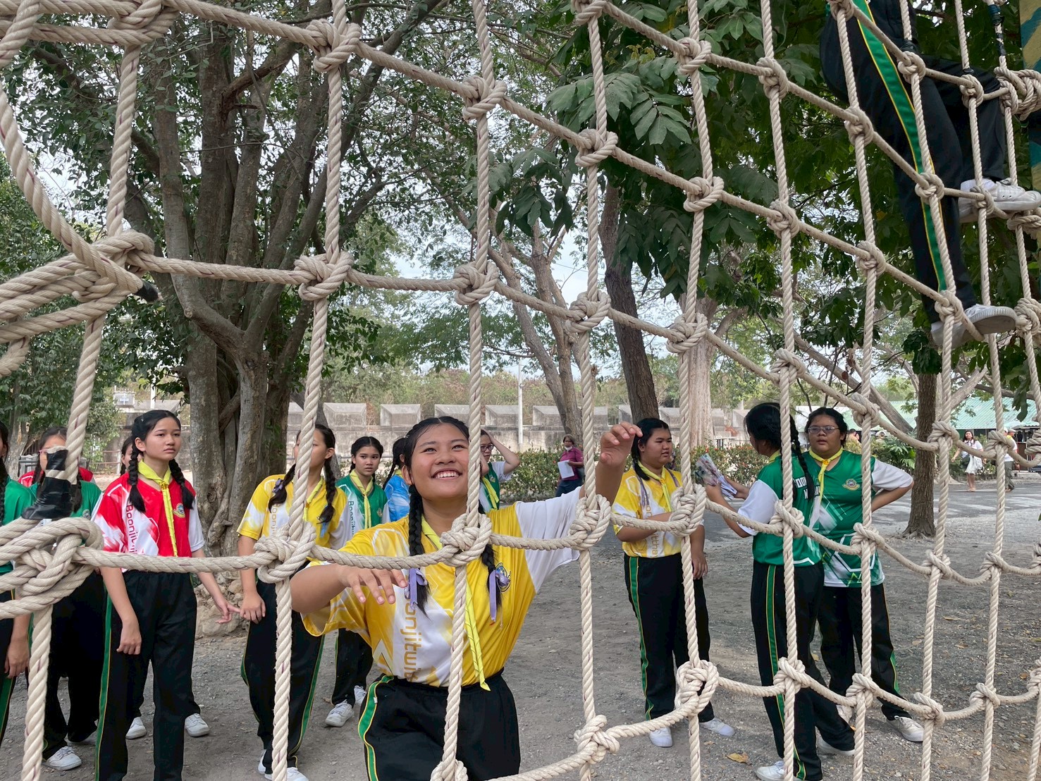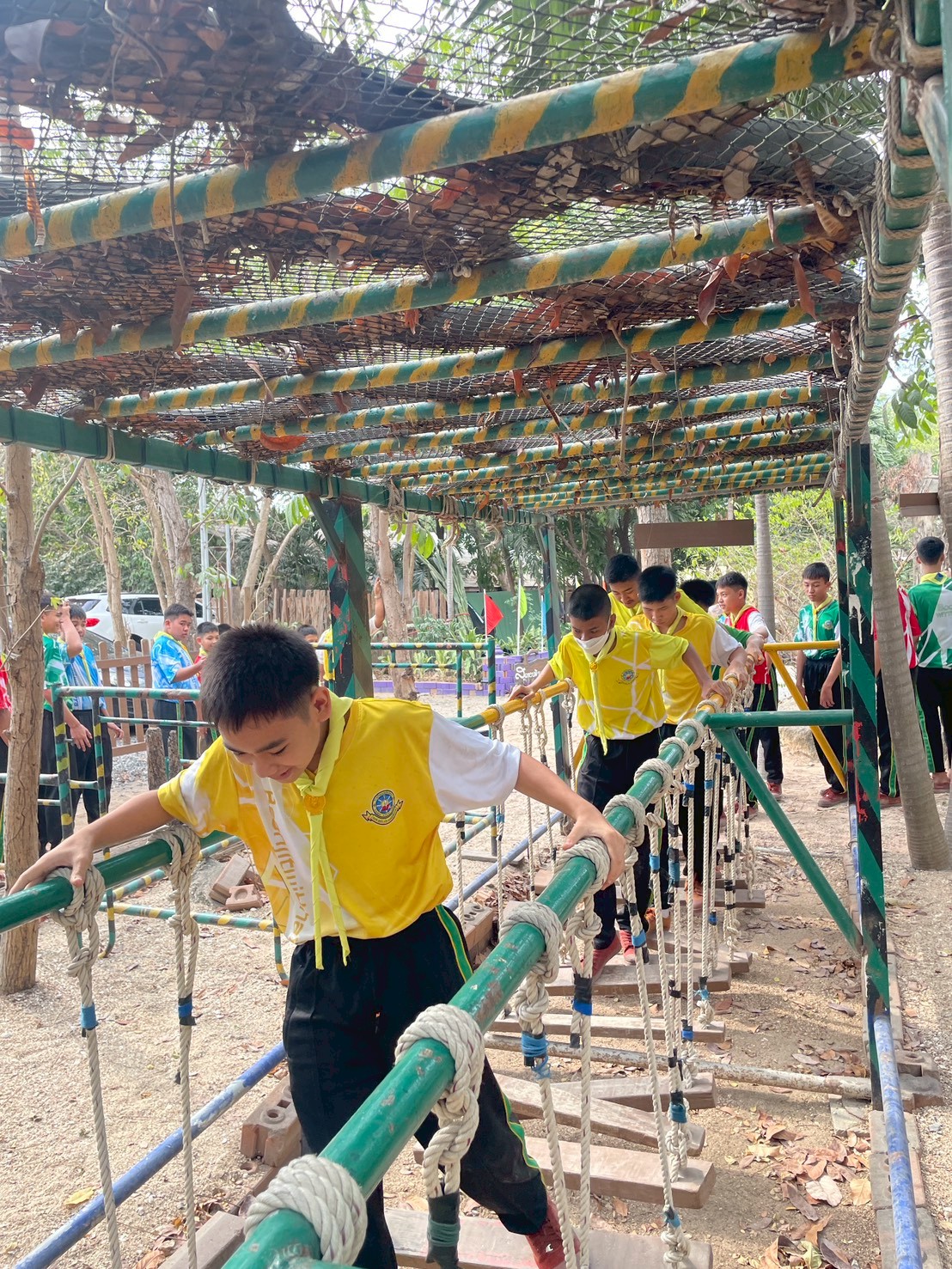 ผ่านฐานต่าง ๆ ได้แก่ ฐานผจญภัยสุดหรรษา สะพานลิง สิงห์ทะเลทราย