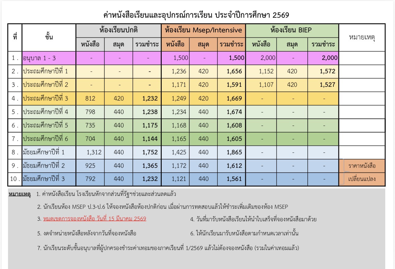 ค่าหนังสือเรียนและอุปกรณ์การเรียน ประจำปีการศึกษา 2569