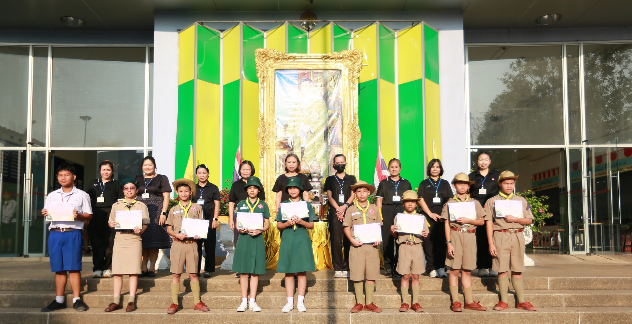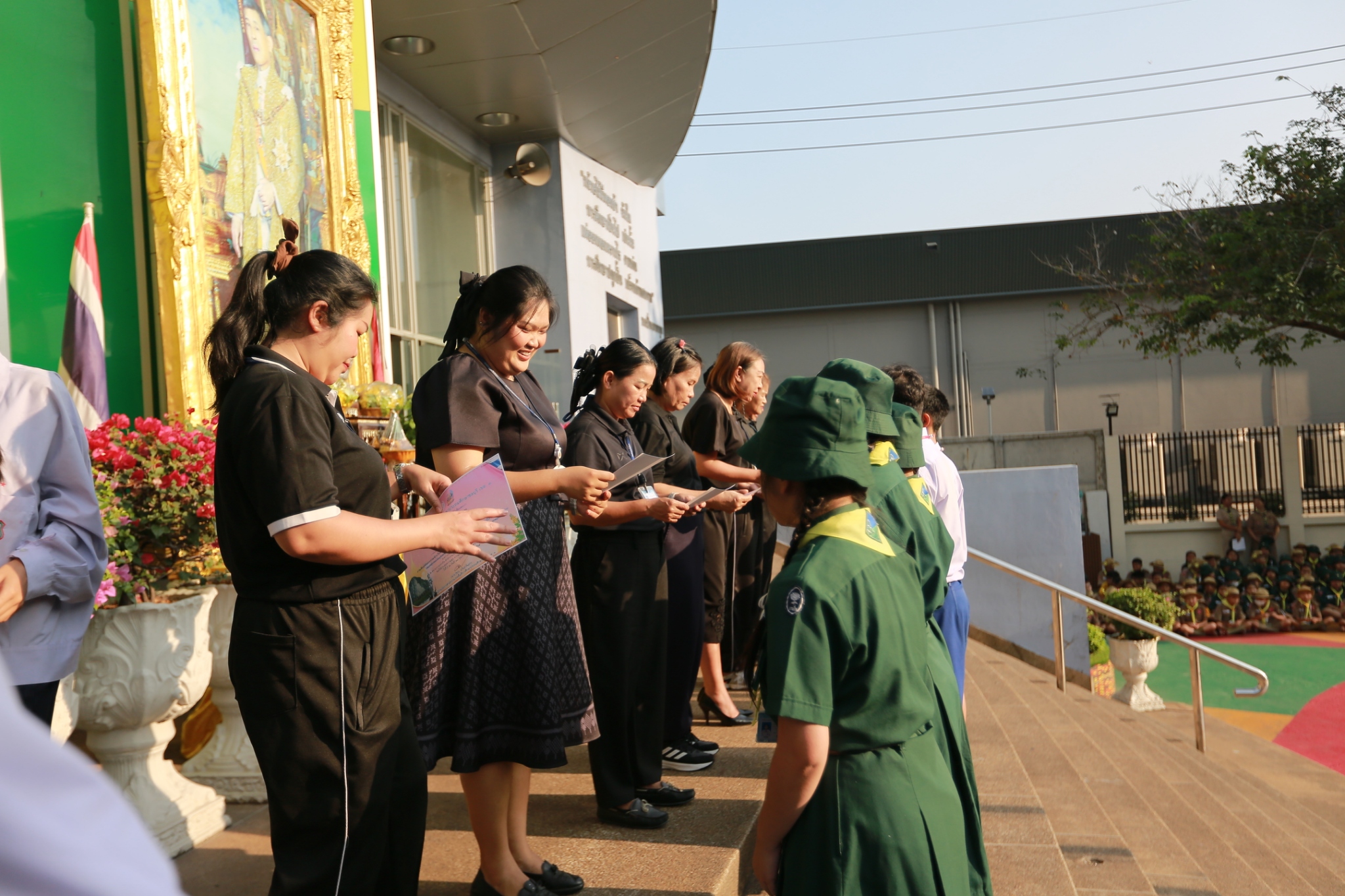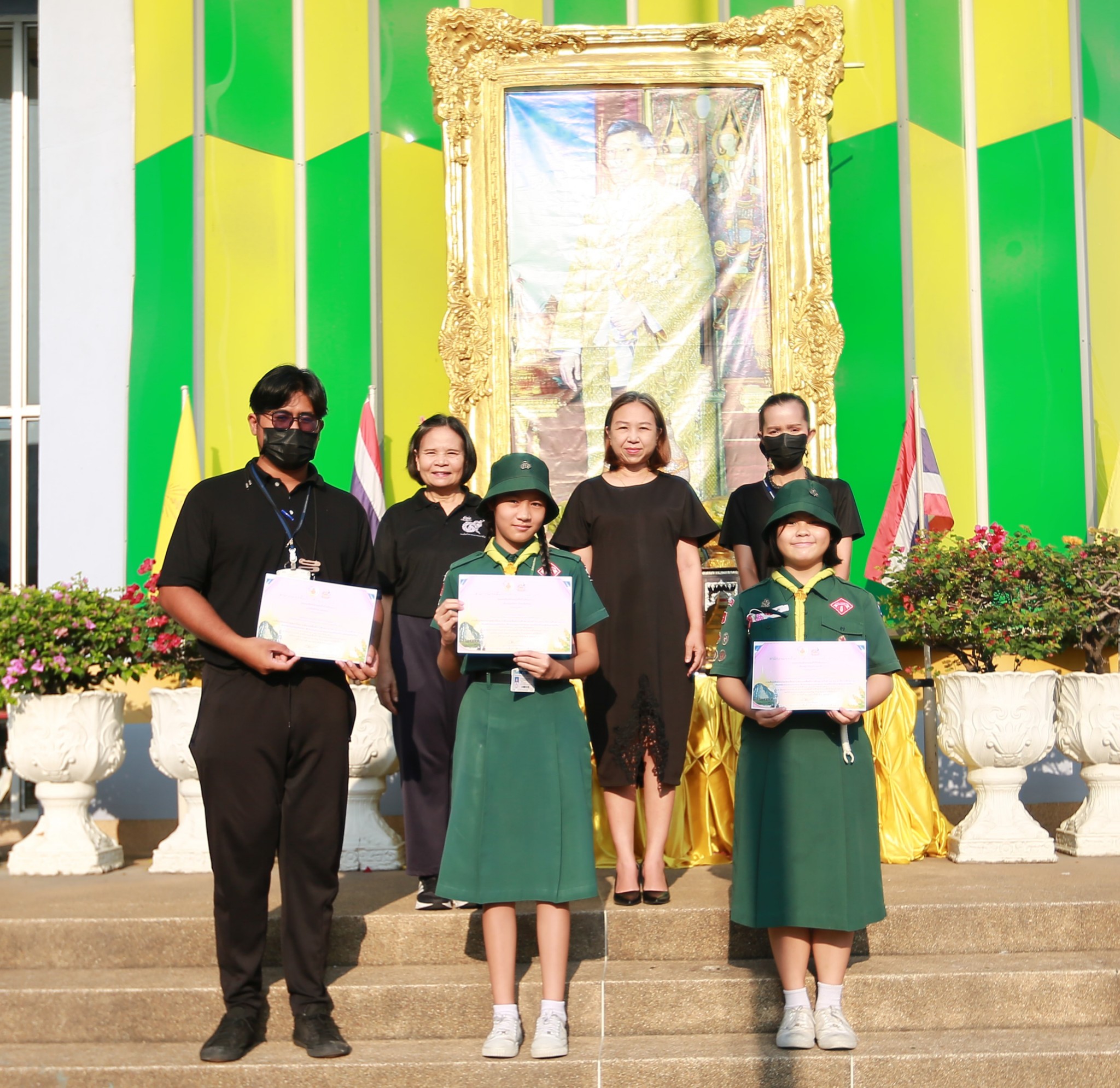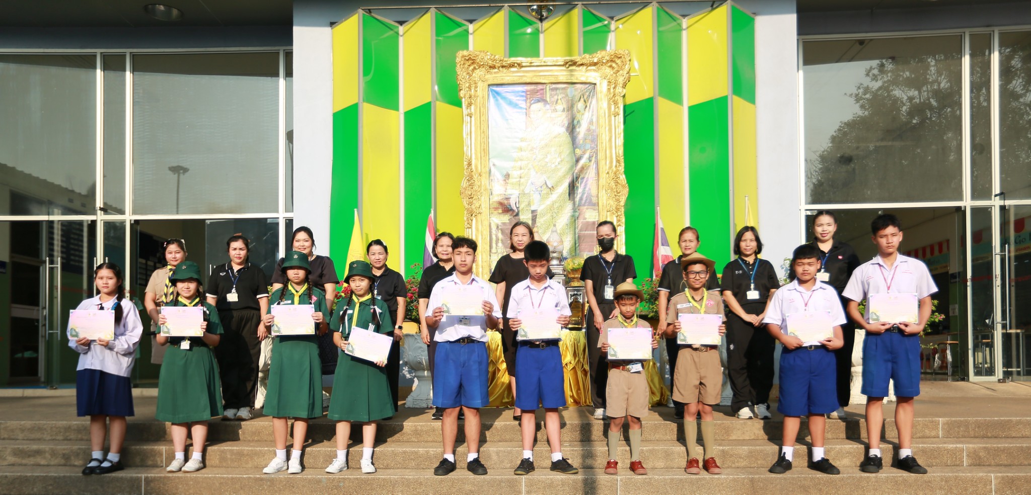 นางชวาลา กันทอง ผู้อำนวยการโรงเรียน พร้อมด้วยคณะผู้บริหารและคณะครู ร่วมมอบเกียรติบัตรแก่นักเรียนที่เข้าร่วมการแข่งขันงานศิลปหัตถกรรมนักเรียน