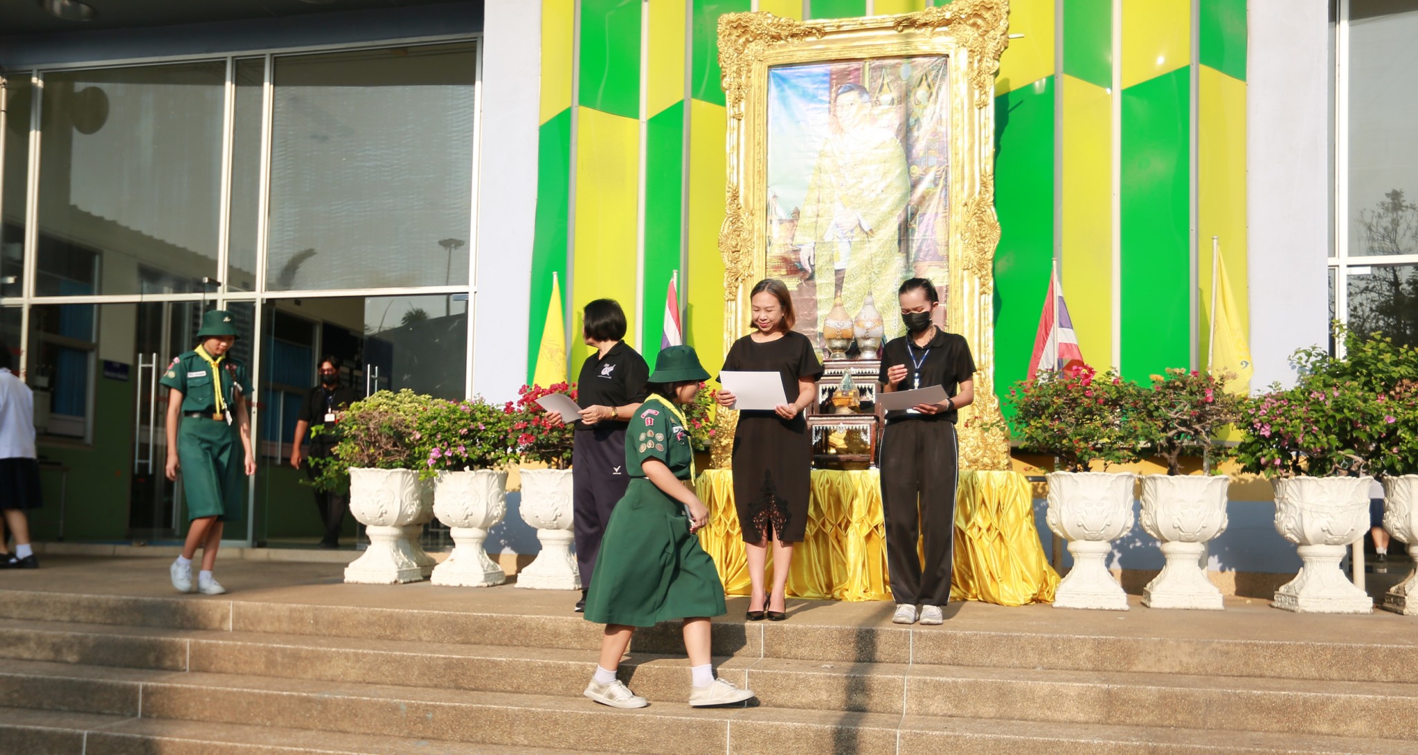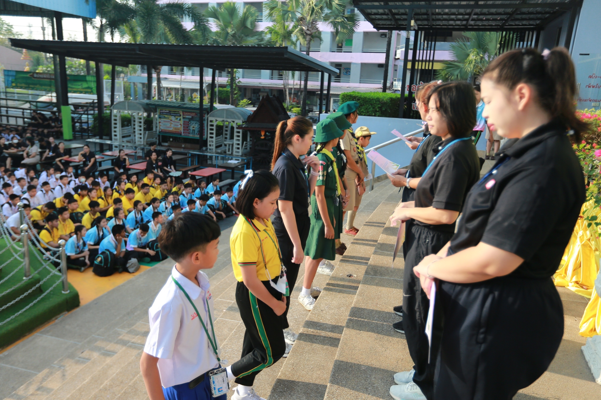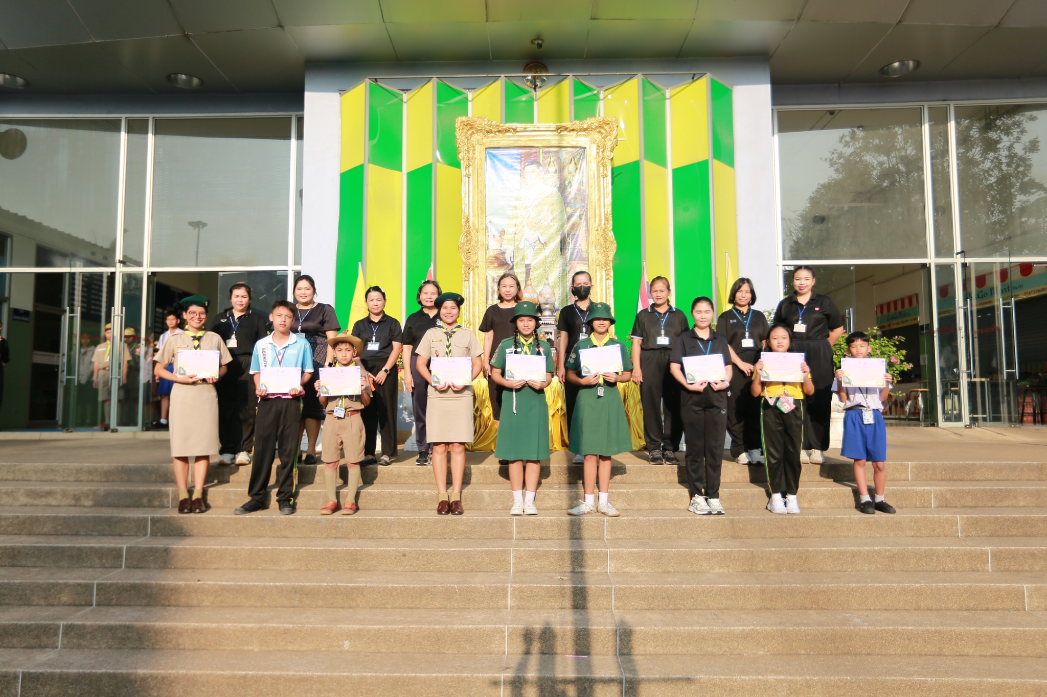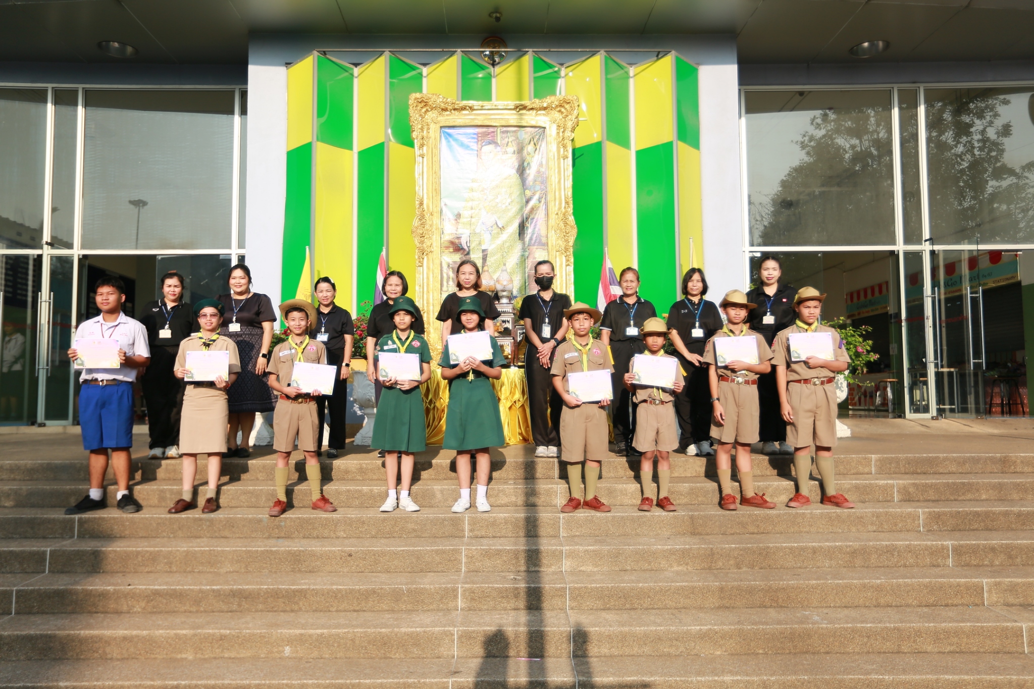 นางชวาลา กันทอง ผู้อำนวยการโรงเรียน พร้อมด้วยคณะผู้บริหารและคณะครู ร่วมมอบเกียรติบัตรแก่นักเรียนที่เข้าร่วมการแข่งขันงานศิลปหัตถกรรมนักเรียน