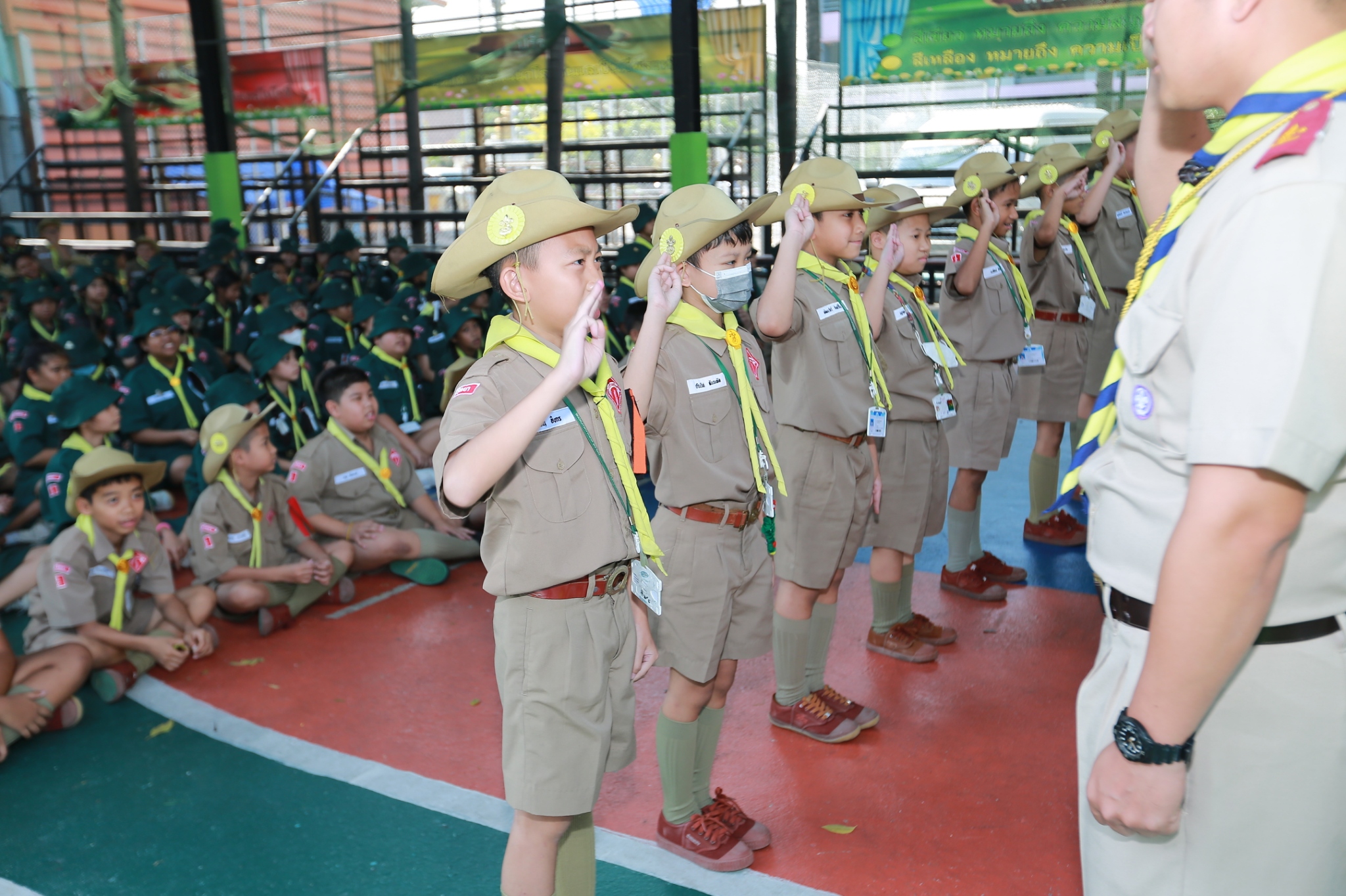 ณ หน้าอาคาร 50 ปี คณะผู้กำกับลูกเสือ ร่วมประดับเครื่องหมายวิชาพิเศษ