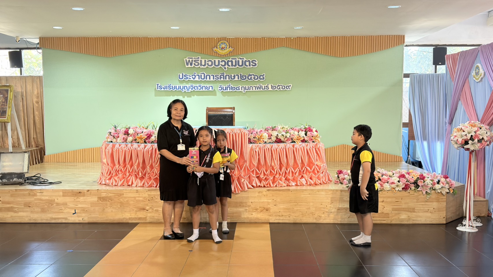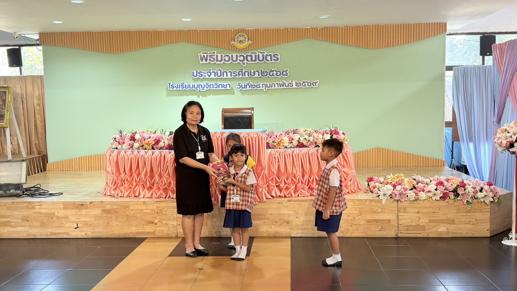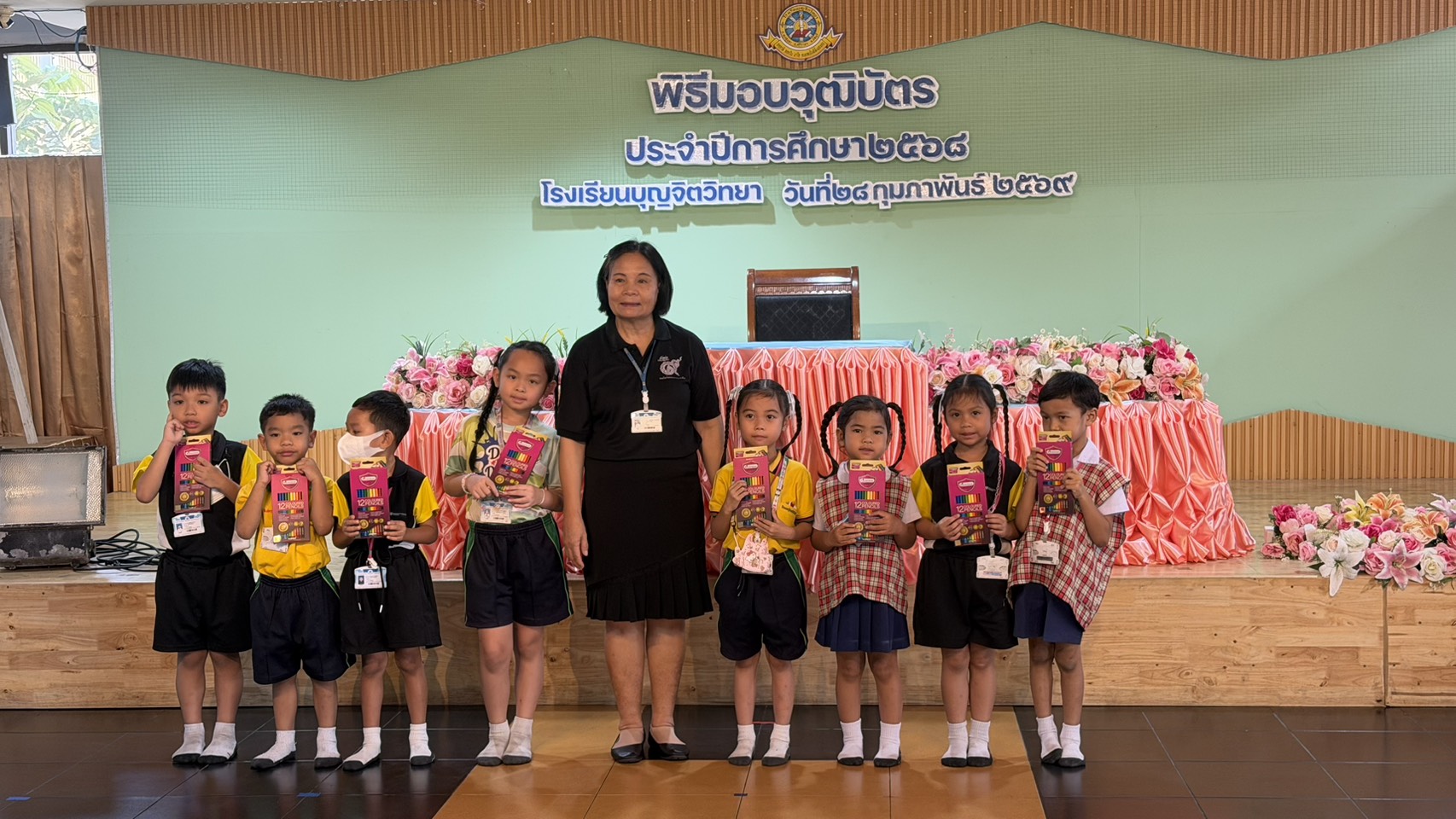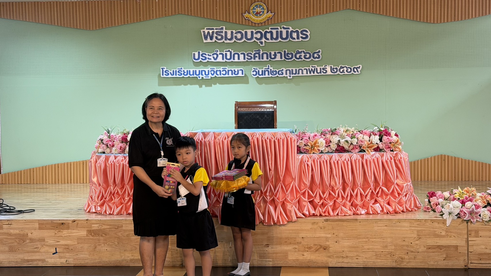 โรงเรียนบุญจิตวิทยา จัดการมอบของรางวัลให้แก่นักเรียน